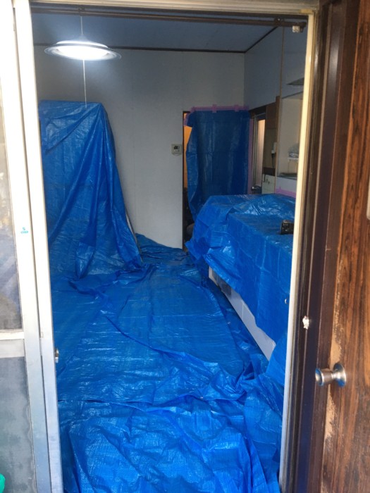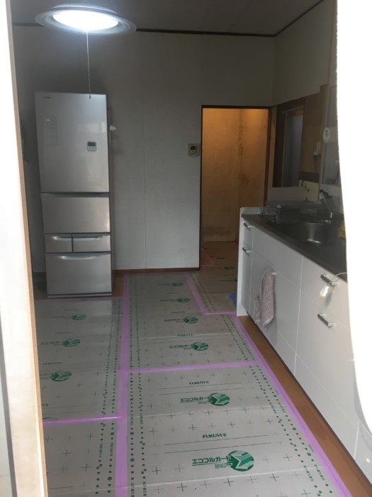 3/18日からK様の浴室の改装工事が始まりました。まずは、室内の養生から始まりました。
